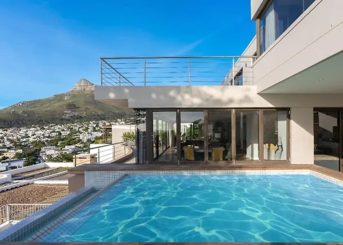 Situated approximately 25 minutes' walk from Kasteelspoort, the 5-bedroom Azure Vistas Villa Cape Town features a terrace with views of the mountain. Offering a swimming pool, the property invites guests to visit Oranjezicht City Farm, located 3.5 km away.